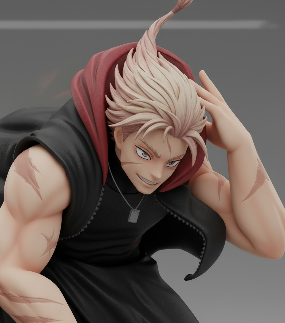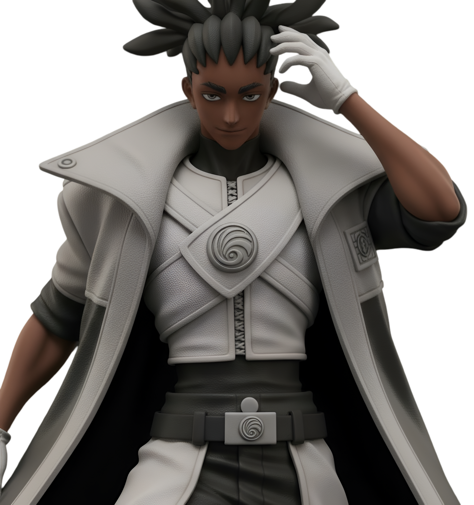 Arkha Corvus, the calm yet commanding leader of the Cleaners, embodies authority and resolve. His dark uniform and the eye tattoo on the back of his head highlight his mysterious aura. As the Ground’s strategist, he guides his squad with discipline, vision, and unwavering faith in their potential.